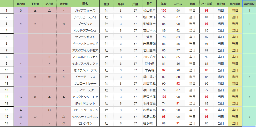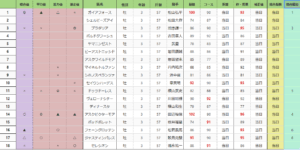 菊花賞 総合指数表 (前々日)