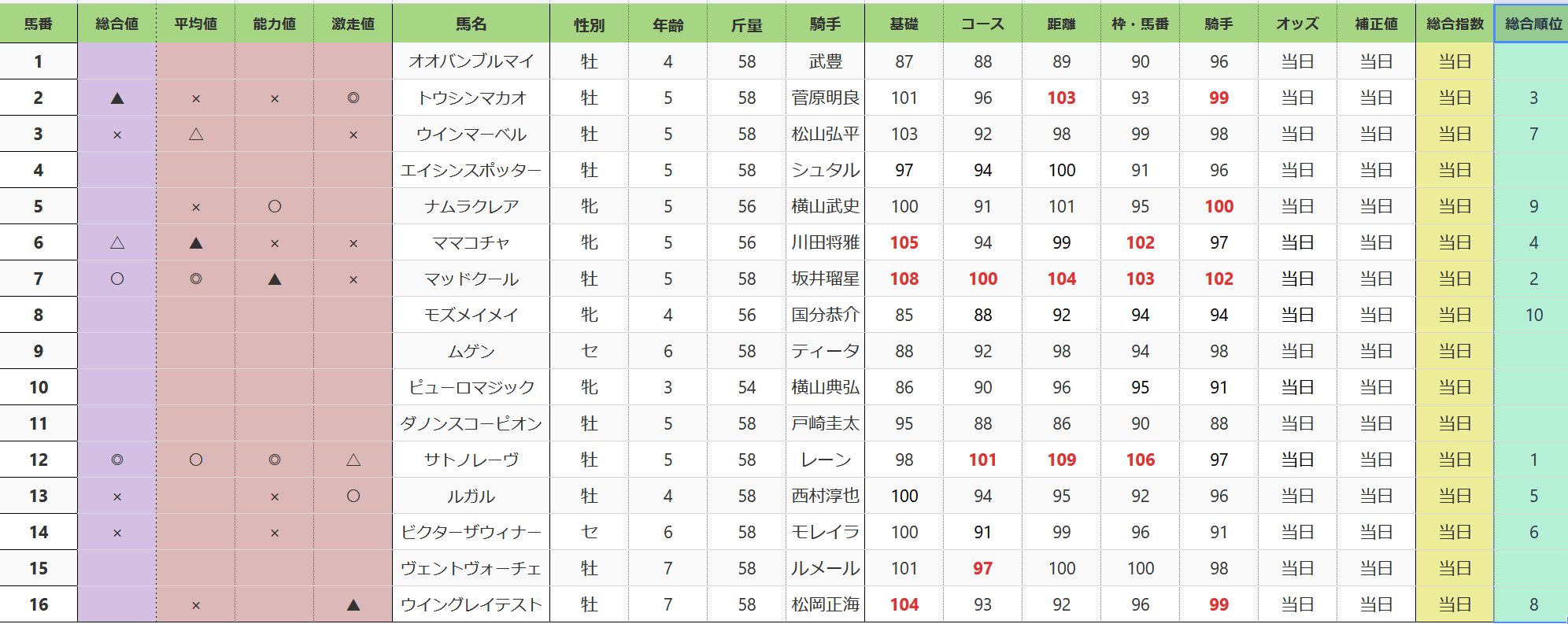 前日段階でも十分に発揮でき、当日の指数と同じく、