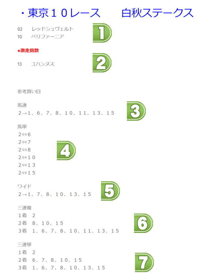 前日段階の総合指数から厳選した馬番となります。